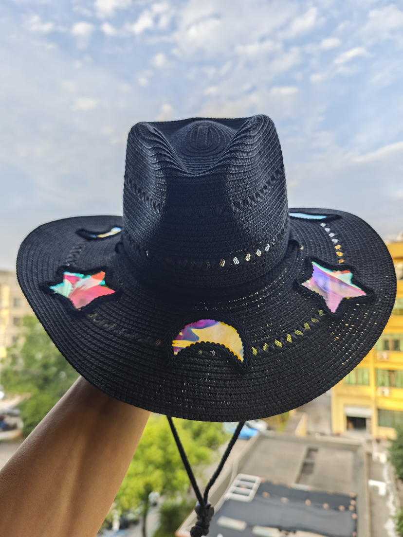 💗Suncatcher Women's Cowgirl Straw Prism Hat with Moon Stars and Heart Spectrum Hat for catching the sunshine and rainbows wherever you go!⭐
