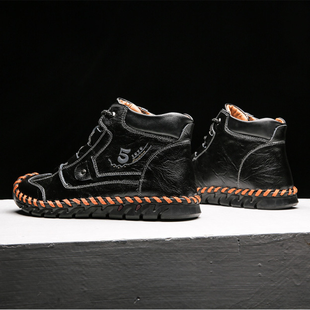 ✅ This pair of leather shoes is made of 5mm thick embossed cowhide and is hand-sewn with double stitching. Over time, this material makes the leather look brighter and more beautiful, and the sewing method makes the shoes more waterproof and strong.