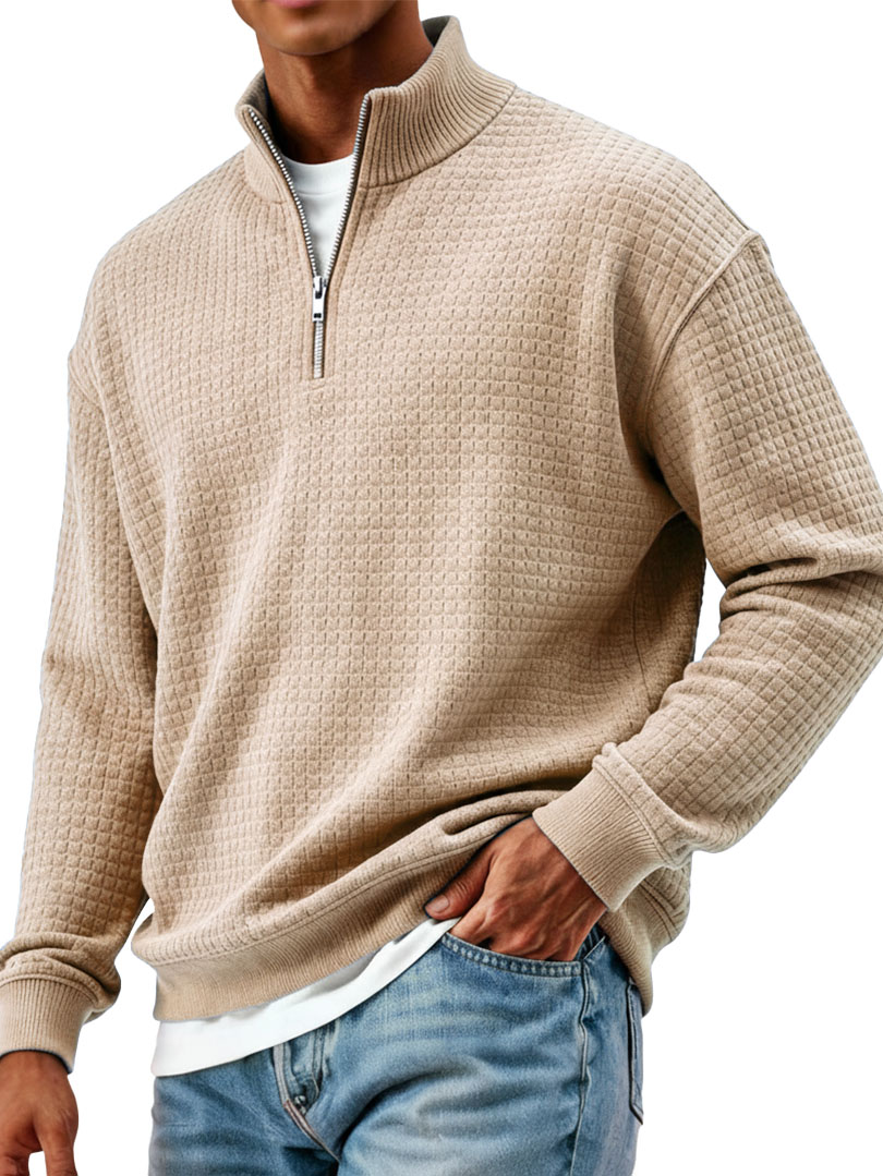 Men's Clothing Fashionable Casual Small Checkered Fabric Standing Collar Long-sleeved Hoodie