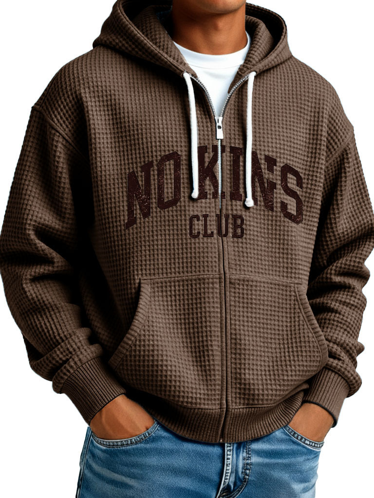 "no Kings" Letter-printed Waffle Fabric Pockets Long-sleeved Hoodie