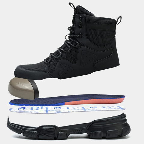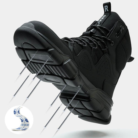 The steel toe cap provides superior protection against dangerous falling objects. In addition, the steel toe on this work shoe can withstand the impact of sharp objects and the relentless force from falling objects. With the steel toe, there is complete comfort, protection and support. The rubber edging and anti-rust paint make the safety boots durable and comfortable to wear.