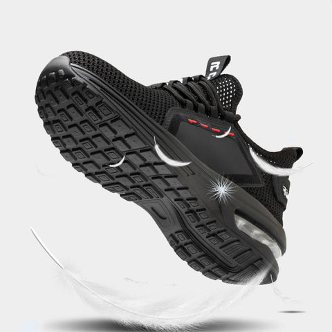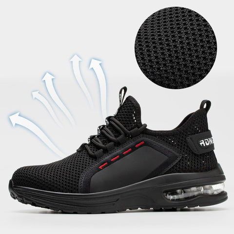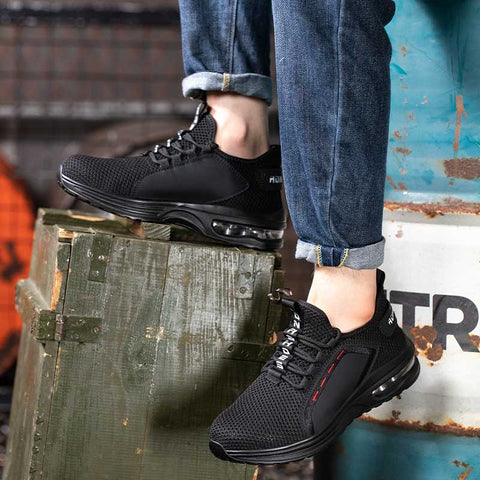 The safety work shoes have been given a modern update with a comfier fit. These heavy-duty steel toe work shoes are made of durable mesh. These are the most premium and breathable shoes for the trail that we can provide. Improved durability while the shoes are not too heavy and reduce the burden of work.