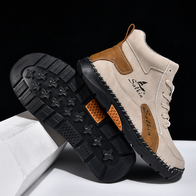 You'll feel the difference real craftsmanship makes. Our full-grain leather upper features reinforced hand-stitching at every stress point – no glued seams to peel or crack over time. The two-tone finish cleverly hides scuffs, while the leather naturally molds to your foot. This is footwear that ages with you, not against you.