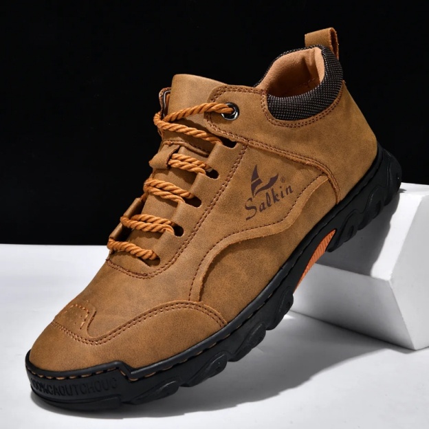 ✅ASTM-Certified Men's Premium Leather Outdoor Shoes – Wide Toe, Arch Support, Waterproof & Non-Slip