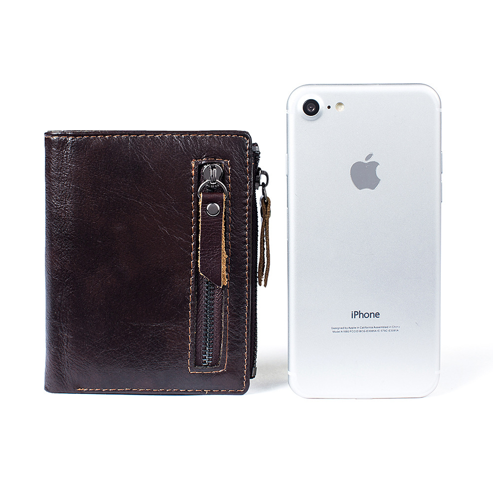 Men's Top Layer Cowhide Short Wallet Card Set