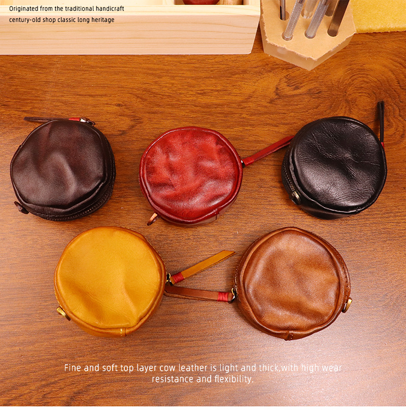 New cowhide coin purse retro handmade headphone bag