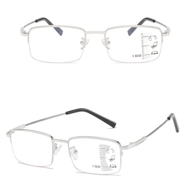 Featuring progressive multi-focal lenses, these glasses provide a seamless transition between near and far distances, making it easy to read, work, and drive without switching frames. The unique ring focus design offers enhanced clarity and a broader visual range, ensuring your vision is sharp and clear in every situation. With built-in anti-blue light protection, these glasses help reduce eye strain and fatigue from digital screens, keeping your eyes comfortable throughout the day.