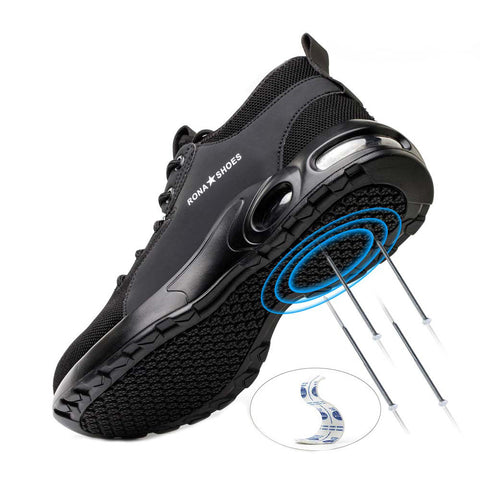 These safety shoes are made of an extremely lightweight material that makes the wearer feel more comfortable and lighter during long working hours. Work all day without foot pain or fatigue thanks to these lightweight safety shoes. The air-cushioned outsole offers a high degree of cushion comfort and arch support. It accelerates blood flow by massaging your feet. Thanks to this feature, you can work without getting tired all day long.