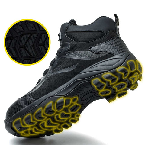 These safety boots have a top-notch rubber outsole that grips well on slippery surfaces, keeping you safe from slips. Plus, they're soft, tough against abrasion-resistant, and resistant to water and oil, so walking feels easy and comfy. No need to worry about slipping and falling—just enjoy your stroll in these safety boots.